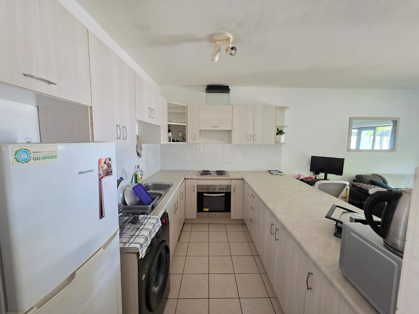 The apartment features an open-plan living and kitchen area with ample natural light, creating a welcoming and functional space for students or young professionals. The bedroom is comfortably sized with built-in cupboards, while the bathroom is neat and modern, fitted with quality finishes.